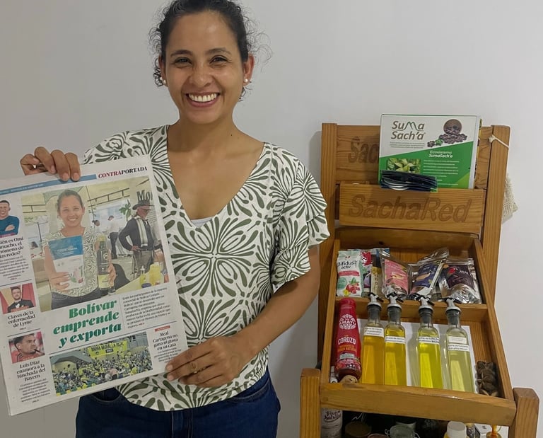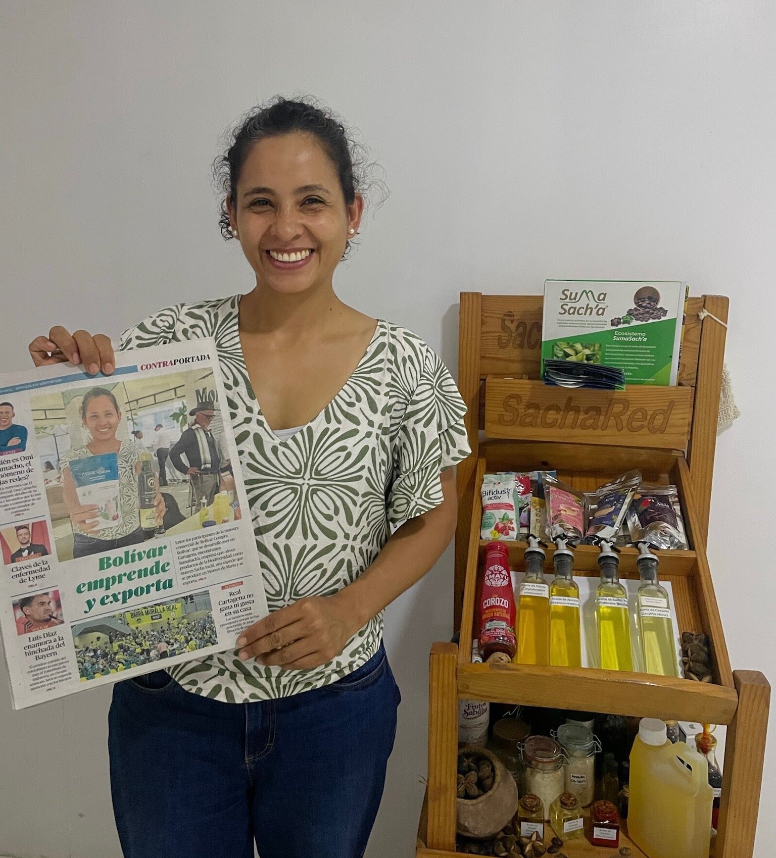 “SumaSacha, empresa que ofrece productos de la biodiversidad, con nueces Sacha Inchi, una especie que se produce en Montes de Maria y exporta.“